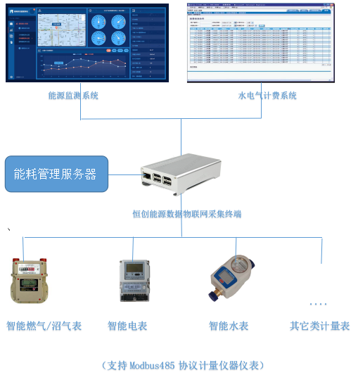 The energy consumption monitoring IOT platform is composed of cloud platform, IOT data acquisition equipment, intelligent gas meters, intelligent water meters, intelligent electricity meters and other intelligent energy meters.